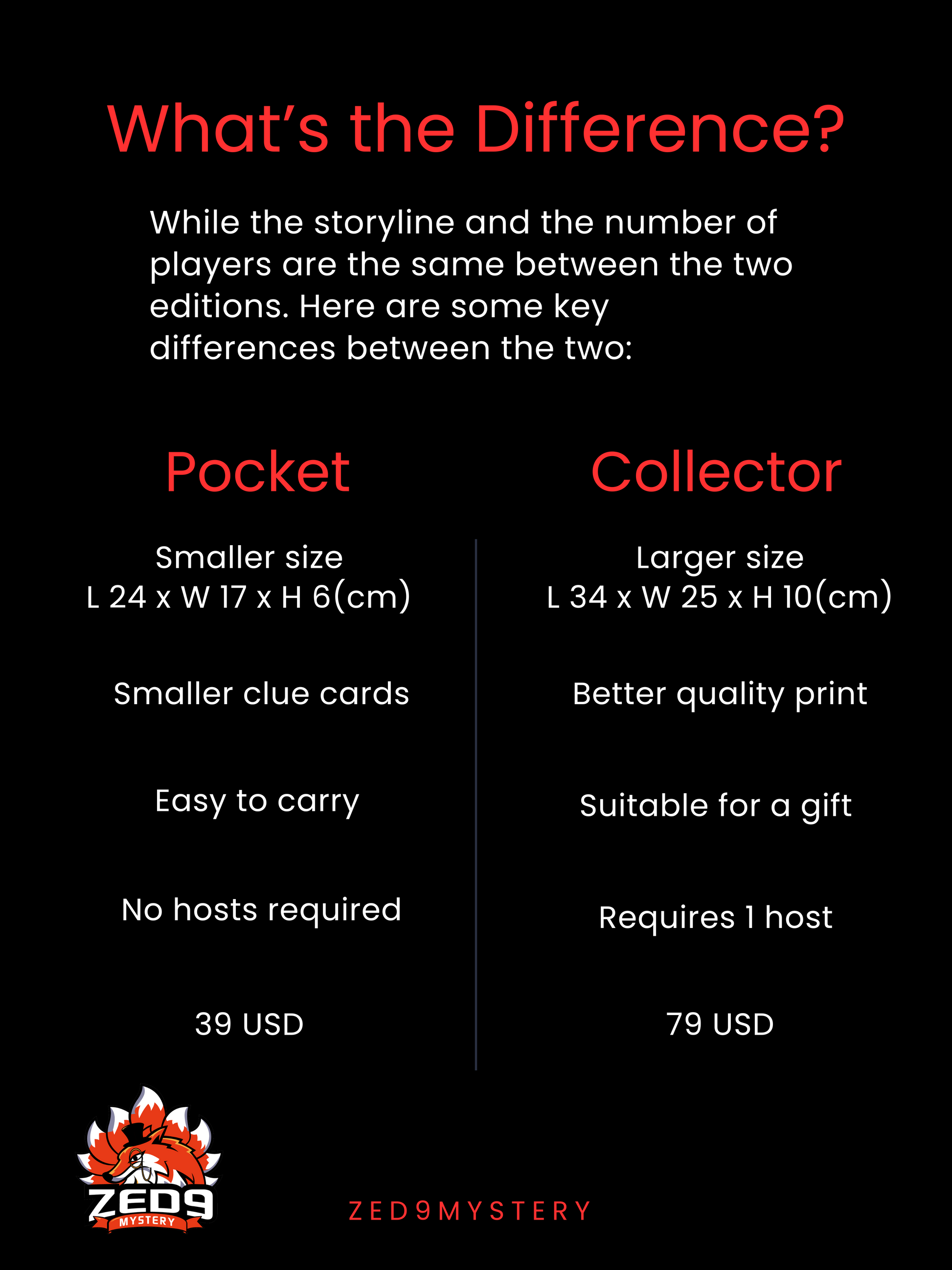 *Please note this is the simplified edition of this game without the need of a host, meaning it has a much smaller box, booklet, and clue cards, but all contents remain the same.